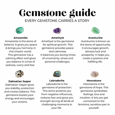 Deze basic armbanden van Uchu Reminders zijn speciaal ontworpen om je te motiveren en te inspireren. Een mooie basic met een bijzondere betekenis! Deze armband wordt geleverd met een kaartje met uitleg van de betekenis van de edelsteen en heeft een zilveren touch.