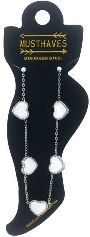 Een prachtig sieraad dat prachtig elegantie en charme combineert. Dit Enkelbandje is gemaakt van roestvrij staal van hoge kwaliteit en is ontworpen om de tand des tijds te weerstaan met behoud van zijn glanzende glans. Versierd met delicate hartvormige accenten, heeft het enkelbandje een prachtige parelmoeder (MOP) inleg die een vleugje iriserende schoonheid toevoegen, waardoor het voor elke gelegenheid een perfect accessoire is.