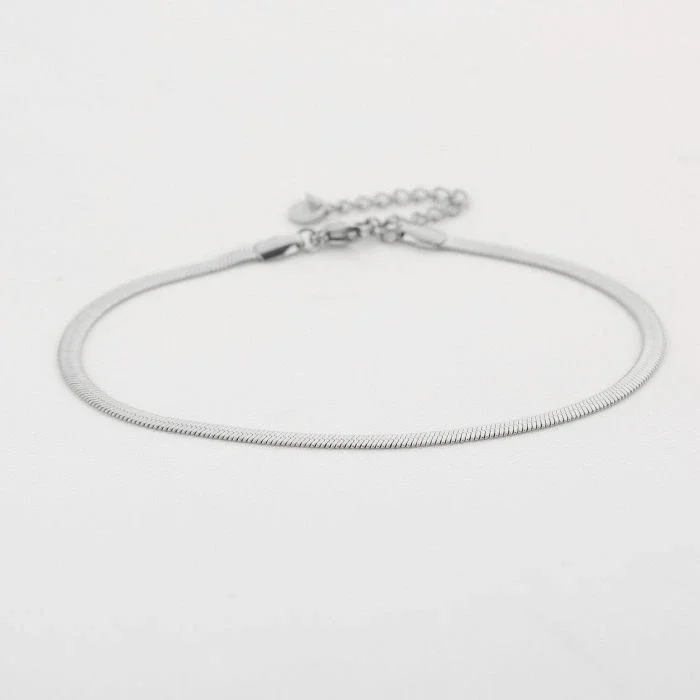 Jouw nieuwe favoriete enkelbandje. Voorjaar, zomer, najaar dit enkelbandje mag niet ontbreken om jouw enkels. Het enkelbandje is gemaakt van een platte schakel en kun je op zichzelf dragen, maar ook combineren met meerdere enkelbandjes samen! Het enkelbandje is van stainless steel waardoor het enkelbandje niet kan verkleuren. Je kunt het enkelbandje dus gewoon omhouden tijdens het douchen en zwemmen. Verkrijgbaar in goud en zilver, 22 cm lang + 4 cm verstelbaar.