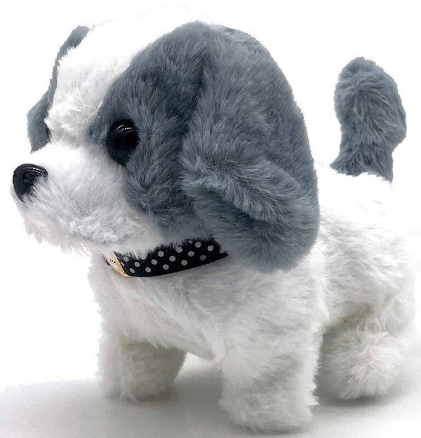 Pluche elektronische hond, een heerlijke metgezel voor kinderen. Dit schattige knuffeltje is maar 15 cm groot en ontworpen om vreugde en vermaak tijdens het spelen te brengen. Met zijn realistische loopfunctie kwispelt deze elektronische hond met zijn staart en beweegt zich rond, waarbij hij de speelse capriolen van een echte puppy nabootst.