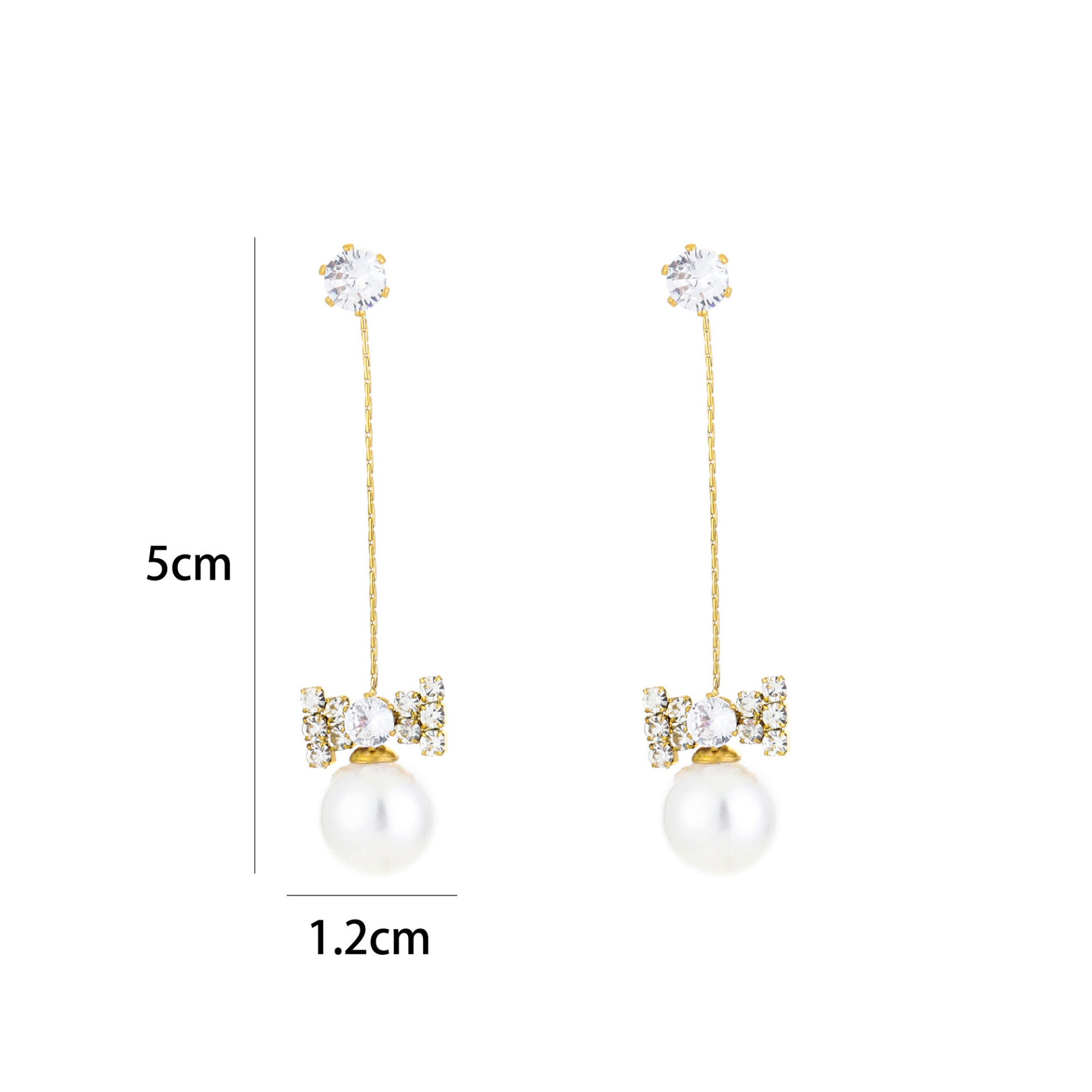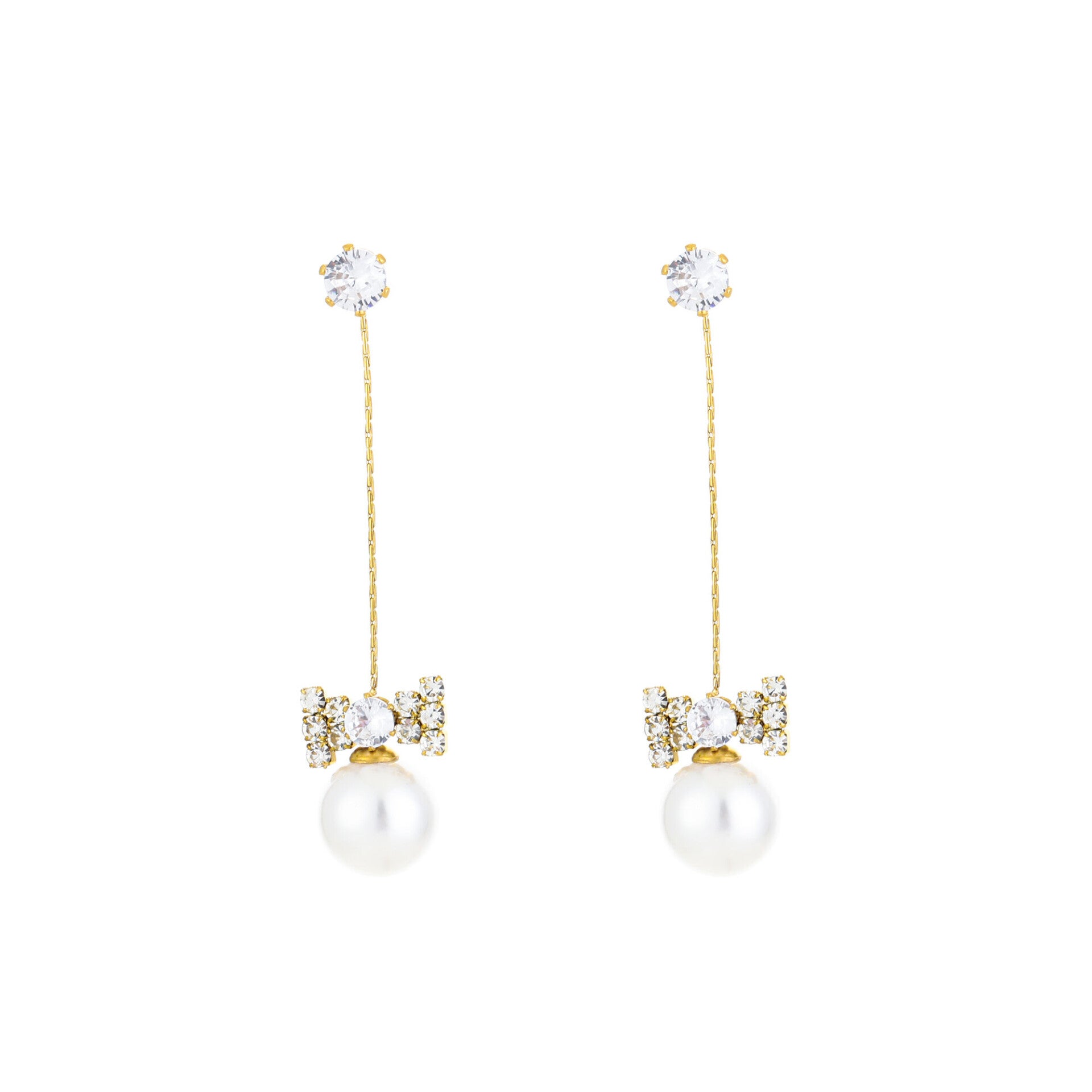 Mooie, feestelijke, maar ook zakelijke oorbellen met strass en een parel in gouden kleur. Gemaakt van Stainless Steel, voor een feestelijke of een zakelijke gelegenheid. Multifunctioneel inzetbaar, eindeloos te combineren